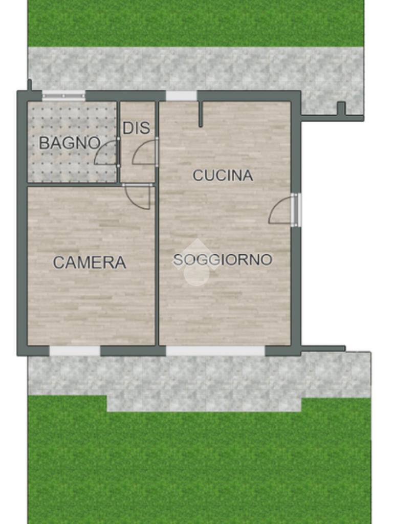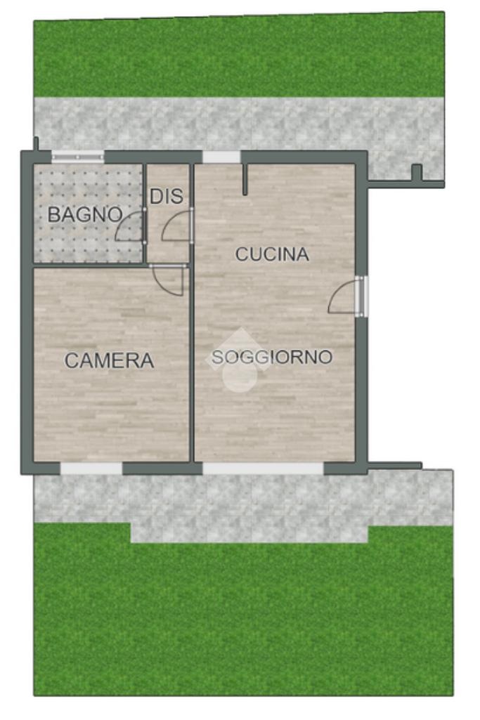 Proponiamo un bilocale posto al pian terreno con ingresso sul soggiorno con cucina a vista, una camera da letto, bagno e impreziosito dal giardino privato su due lati.