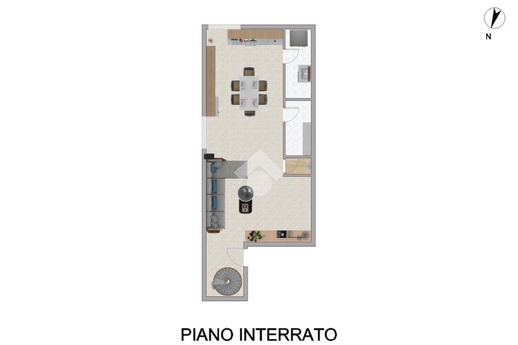 La zona notte è composta da una camera matrimoniale, una cameretta e due bagni, uno dei quali è finestrato e dotato di vasca. L'appartamento è equipaggiato con antifurto e aria condizionata per garantire il massimo comfort. Una scala a chiocciola interna conduce a un'ampia taverna con zona cottura e un ulteriore bagno, ideale per ospiti o come spazio ricreativo.