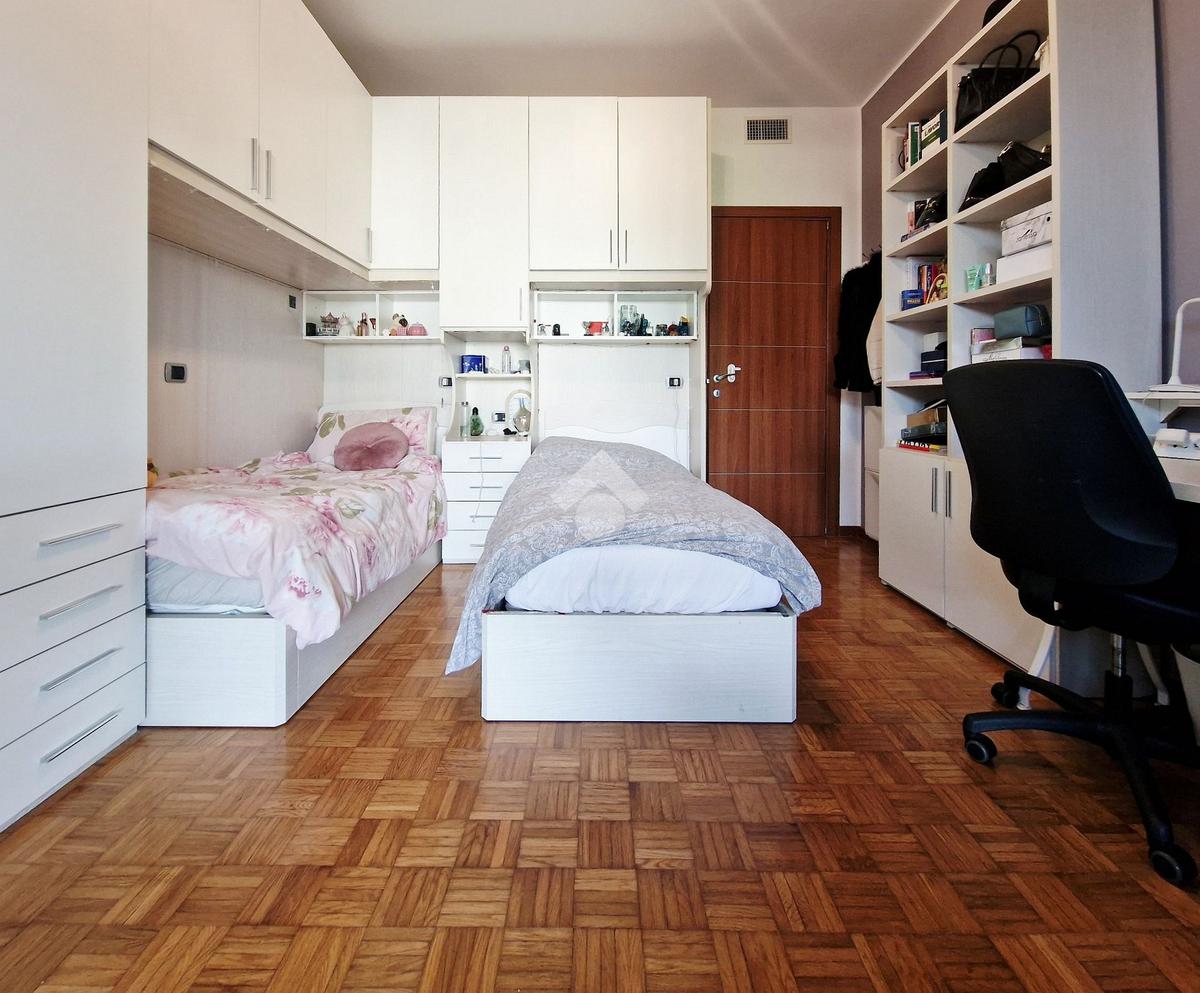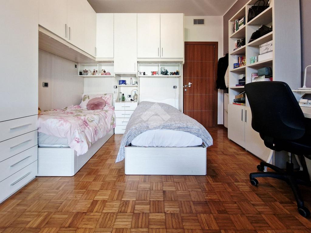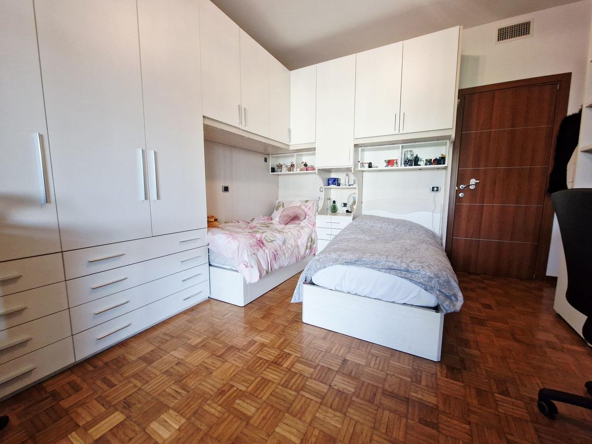 Il disimpegno, valorizzato da un comodo abbassamento strutturale utilizzabile come ripostiglio, collega la zona notte dove sono presenti la camera da letto matrimoniale, la cameretta in grado di ospitare due letti singoli, un bagno di servizio e un bagno padronale rivestito con ceramiche moderne e completo di vasca e doccia.