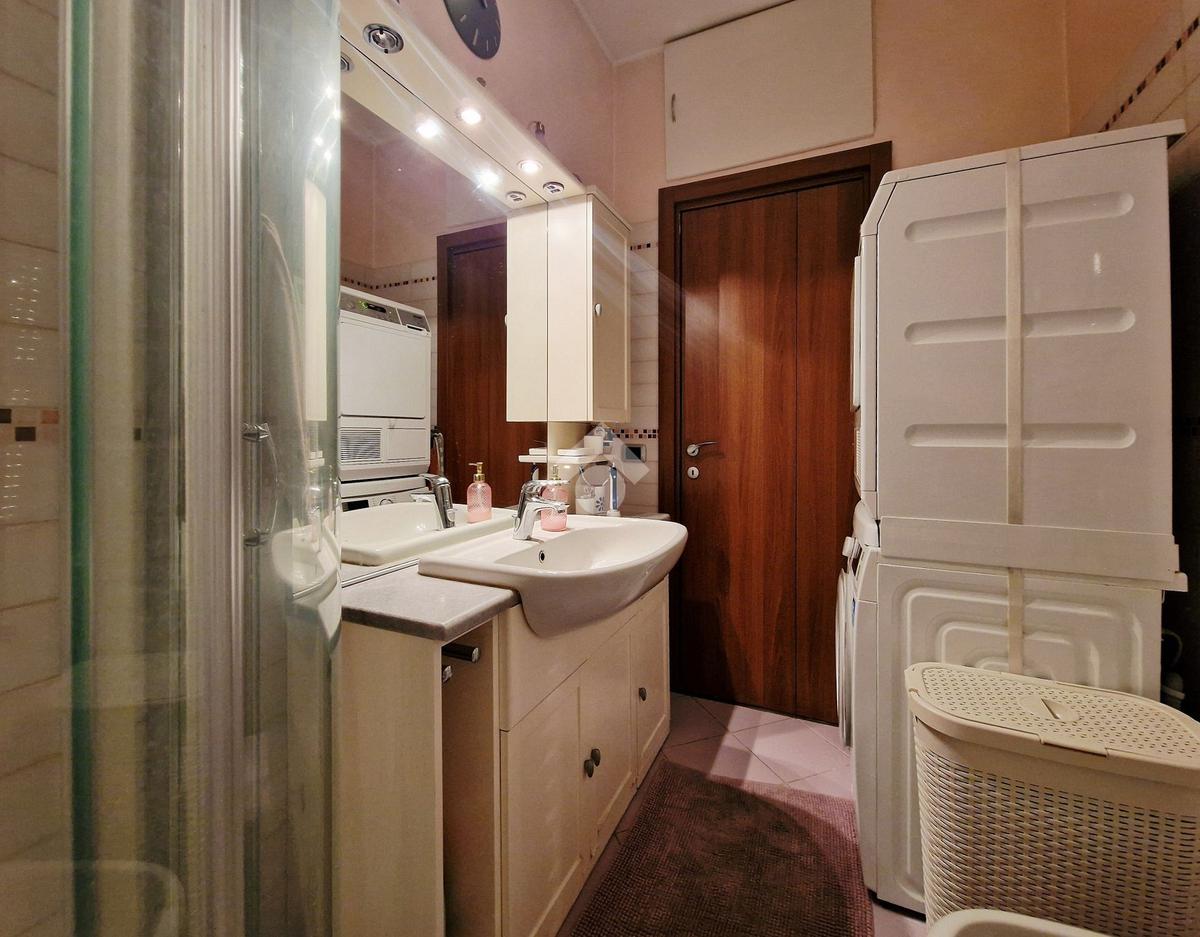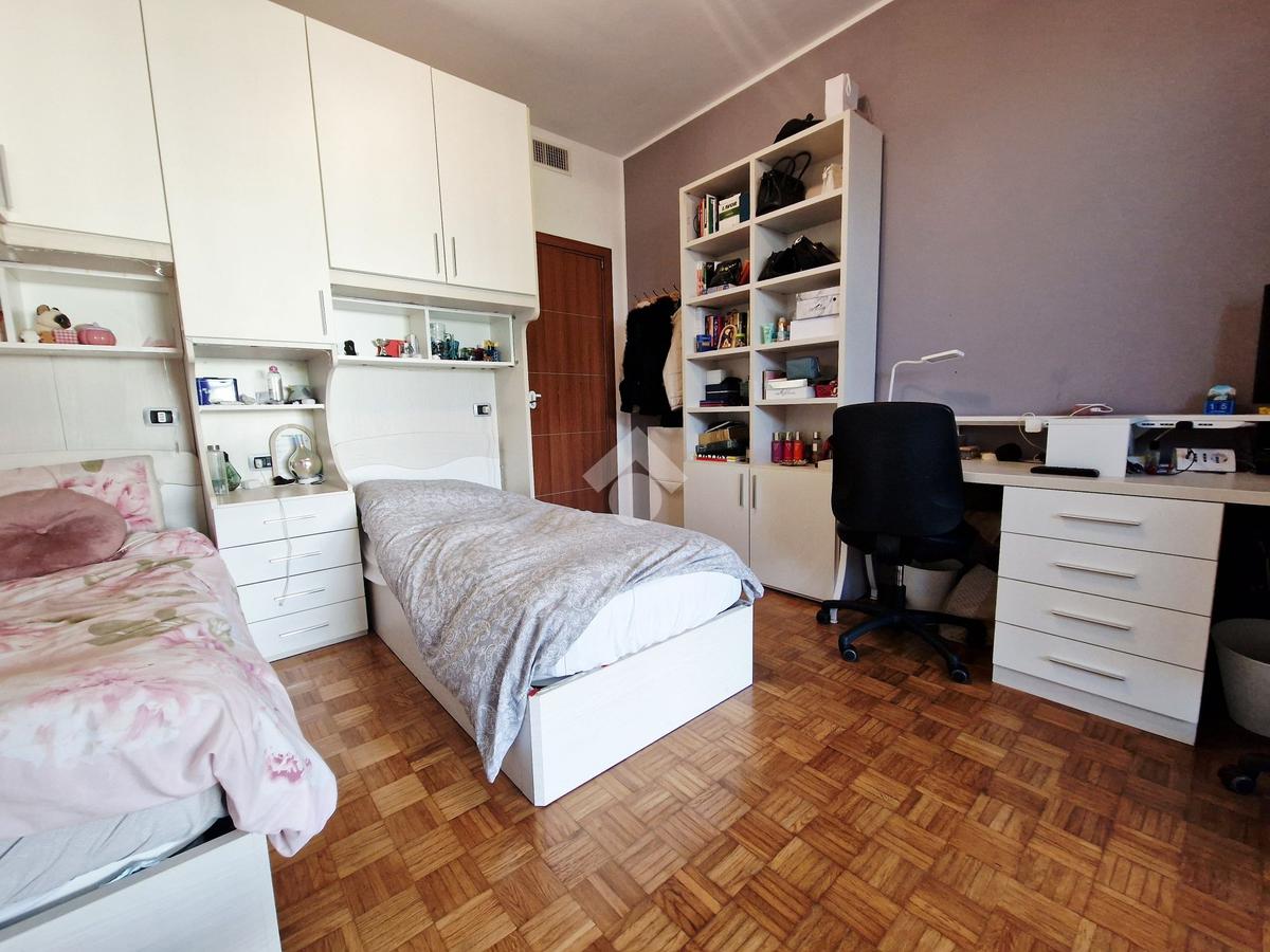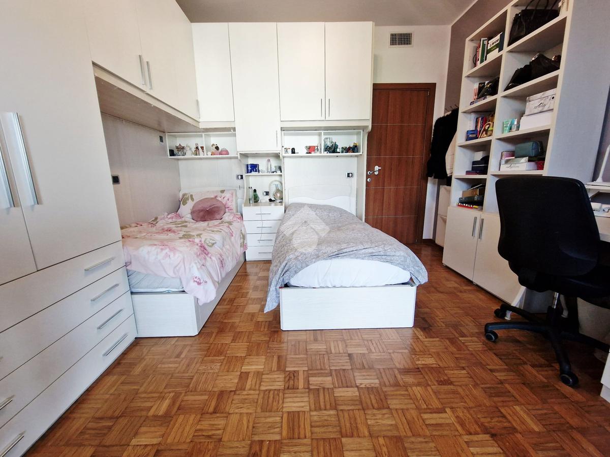 Il disimpegno, valorizzato da un comodo abbassamento strutturale utilizzabile come ripostiglio, collega la zona notte dove sono presenti la camera da letto matrimoniale, la cameretta in grado di ospitare due letti singoli, un bagno di servizio e un bagno padronale rivestito con ceramiche moderne e completo di vasca e doccia.