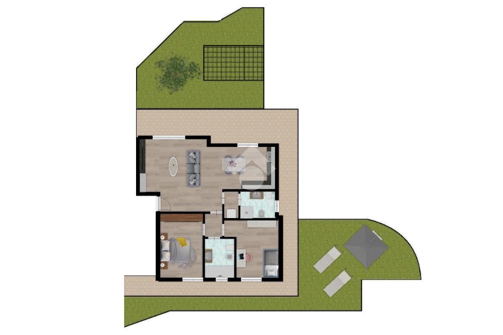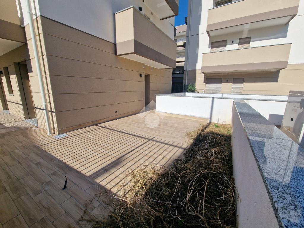 L'appartamento al piano terra è valorizzato dal giardino privato di circa 125mq e presenta un'ampia zona giorno con cucina a vista di 35mq, due camere da letto e doppi servizi finestrati.