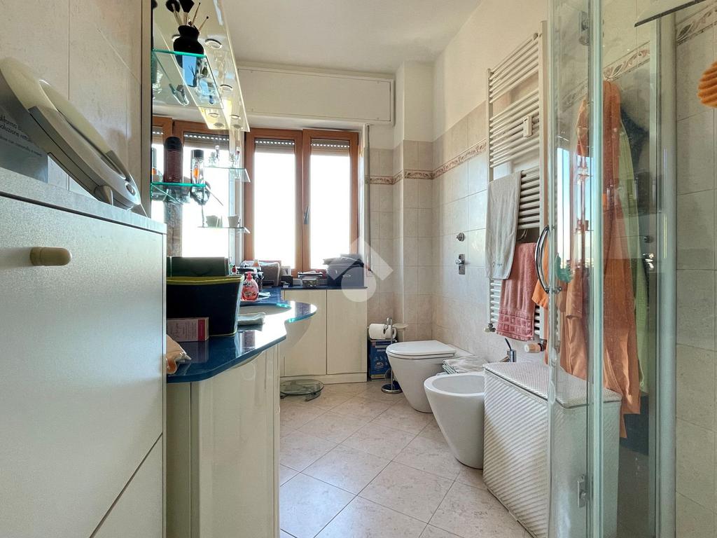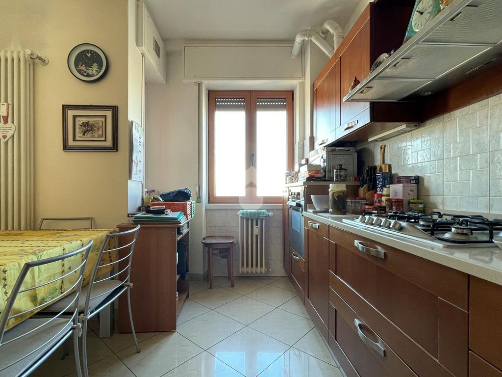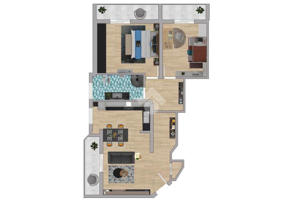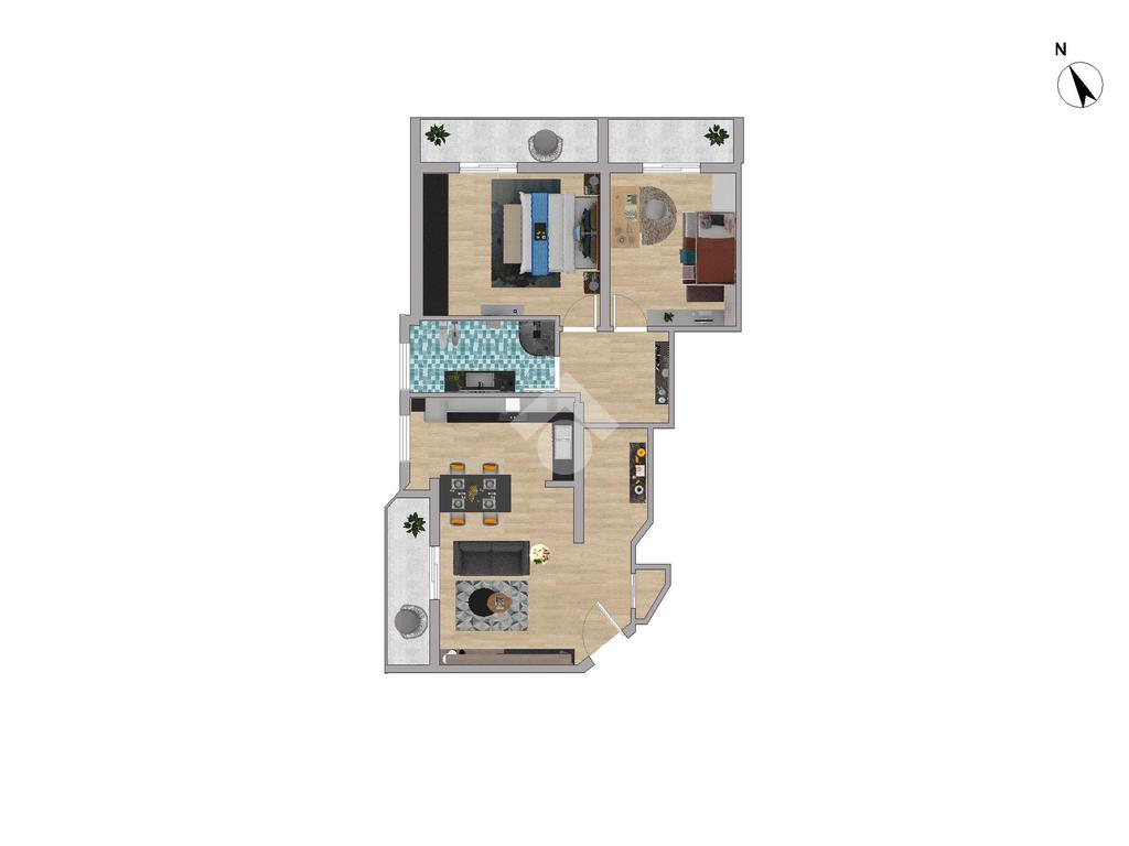 L’ingresso è sulla zona giorno completa di soggiorno con balcone, cucina a vista e ripostiglio mentre il pratico disimpegno collega la zona notte dove sono presenti le due spaziose camere da letto, entrambe con uscita sul balcone, e il bagno finestrato completo di doccia.