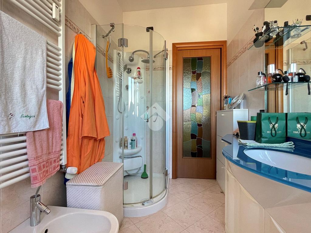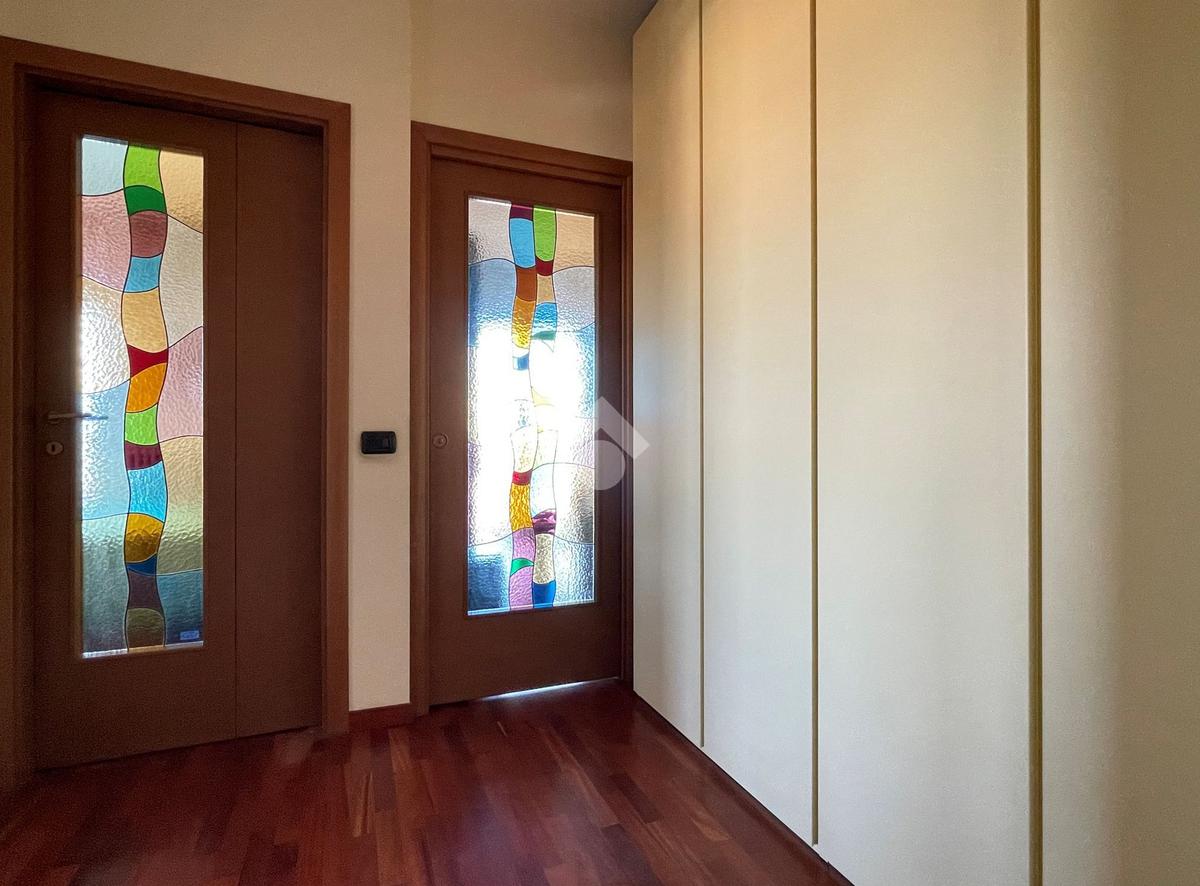 Internamente la soluzione è stata ristrutturata e presenta infissi con doppio vetro e impianto di aria condizionata.