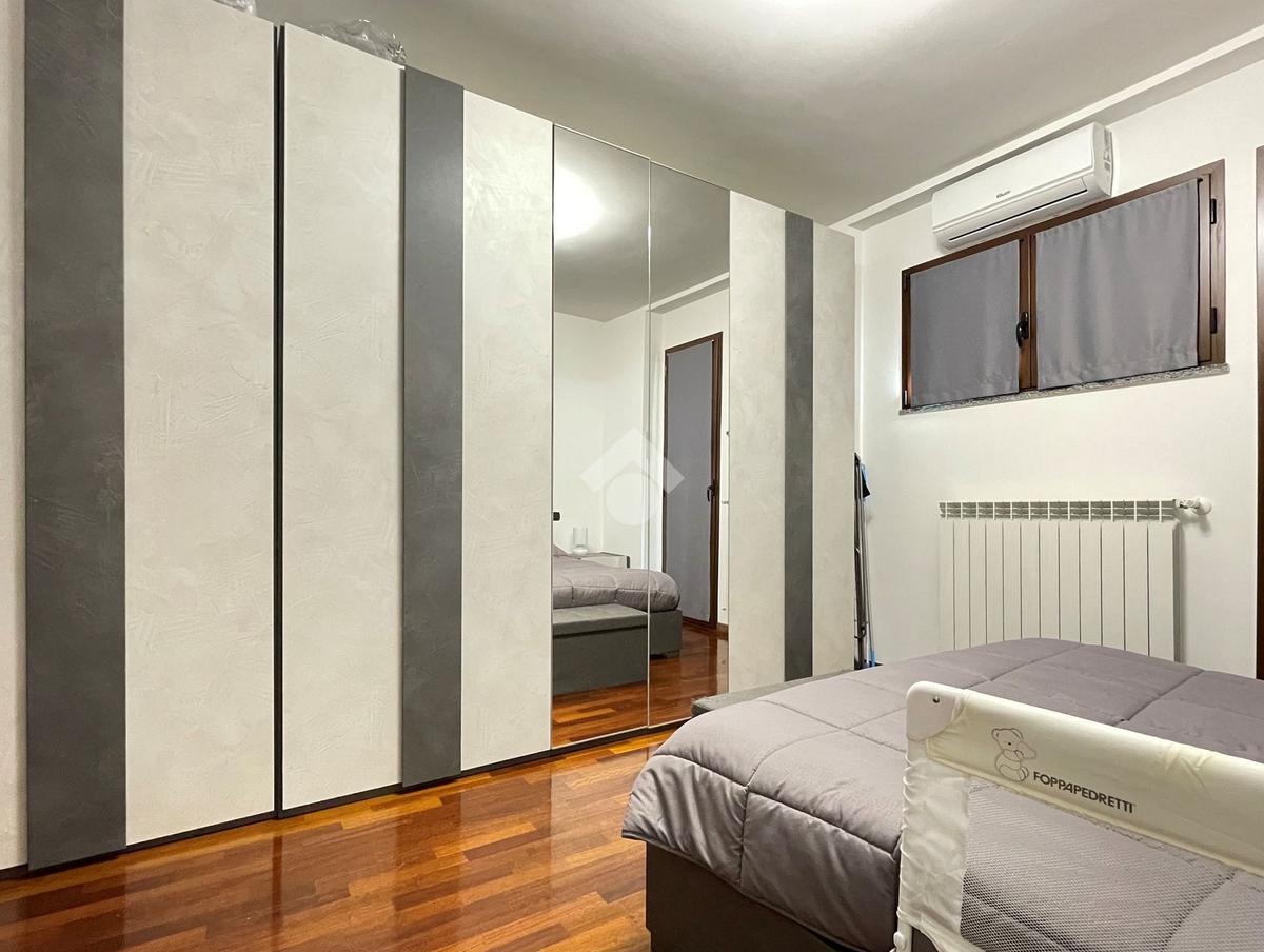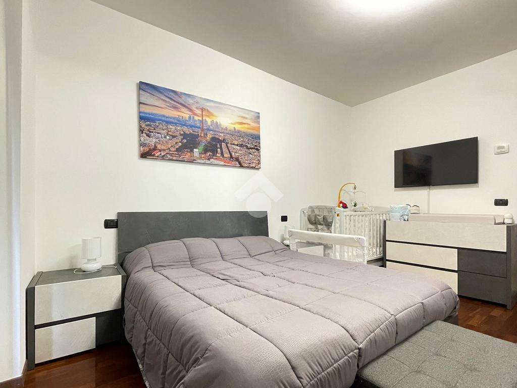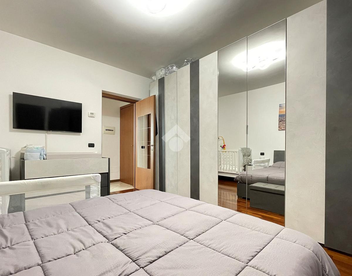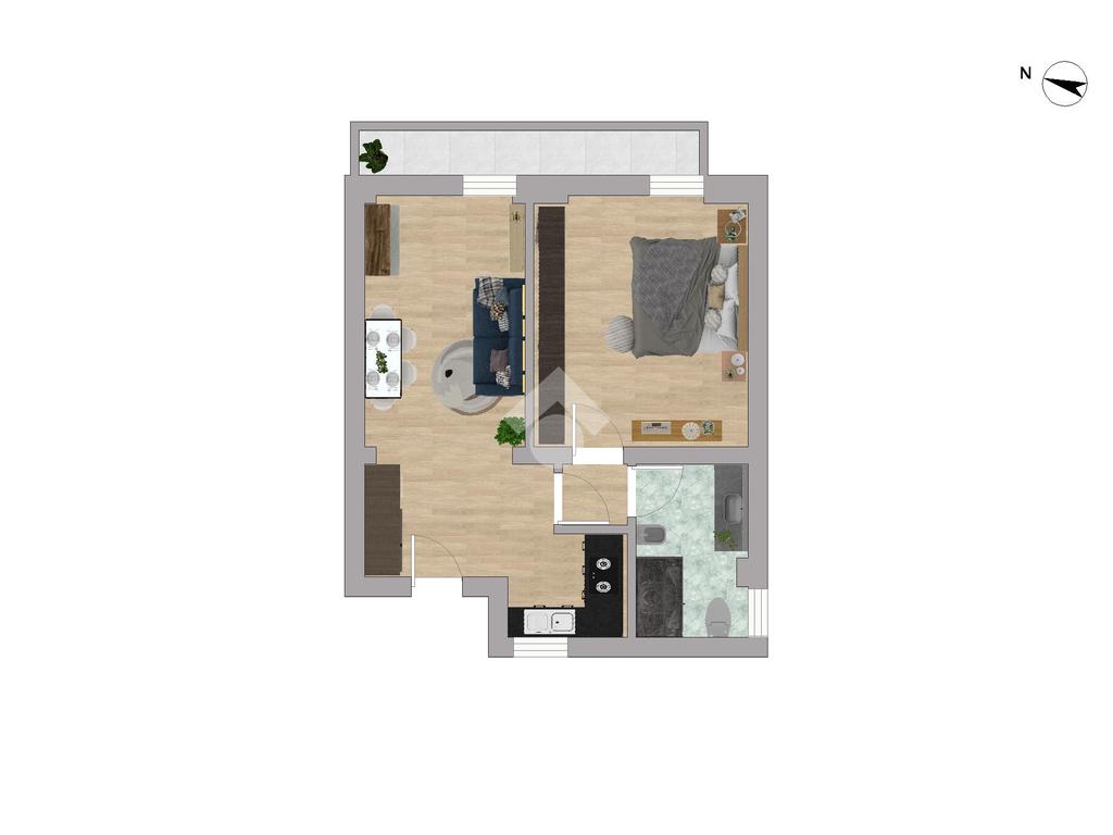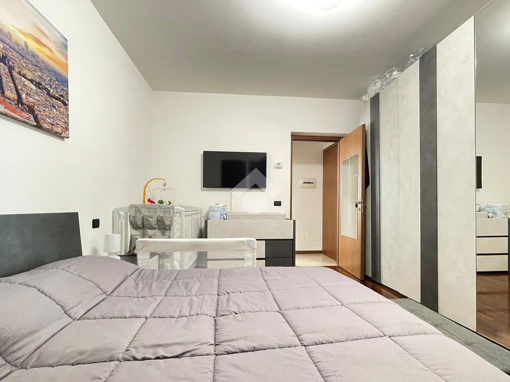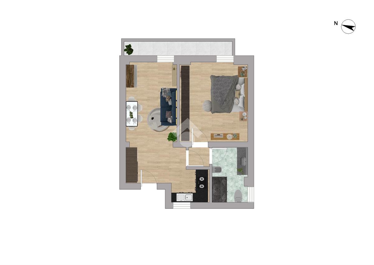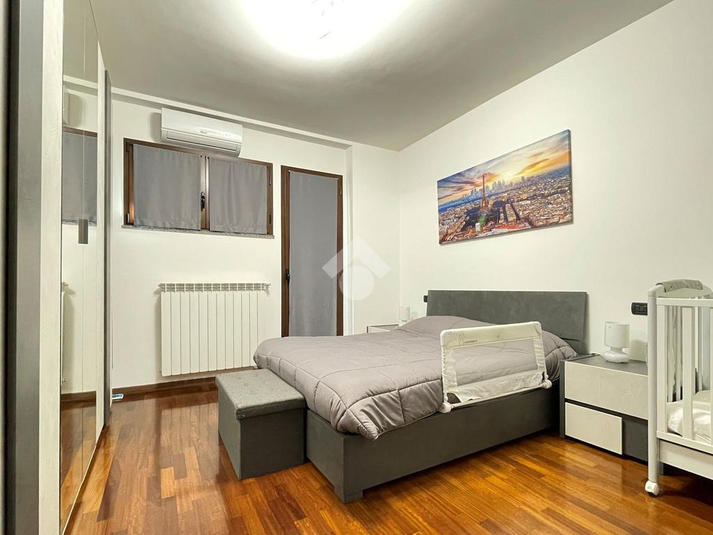 L'ingresso è sulla zona giorno con cucina a vista mentre il comodo disimpegno conduce alla camera da letto matrimoniale rifinita con pavimento in parquet e al bagno finestrato, rivestito con ceramiche moderne e completo di doccia.