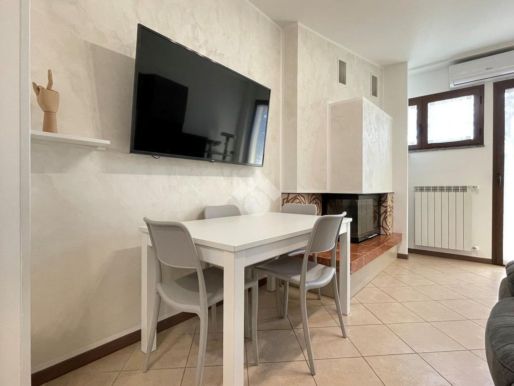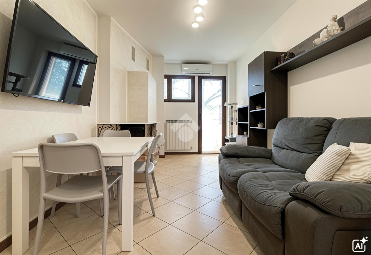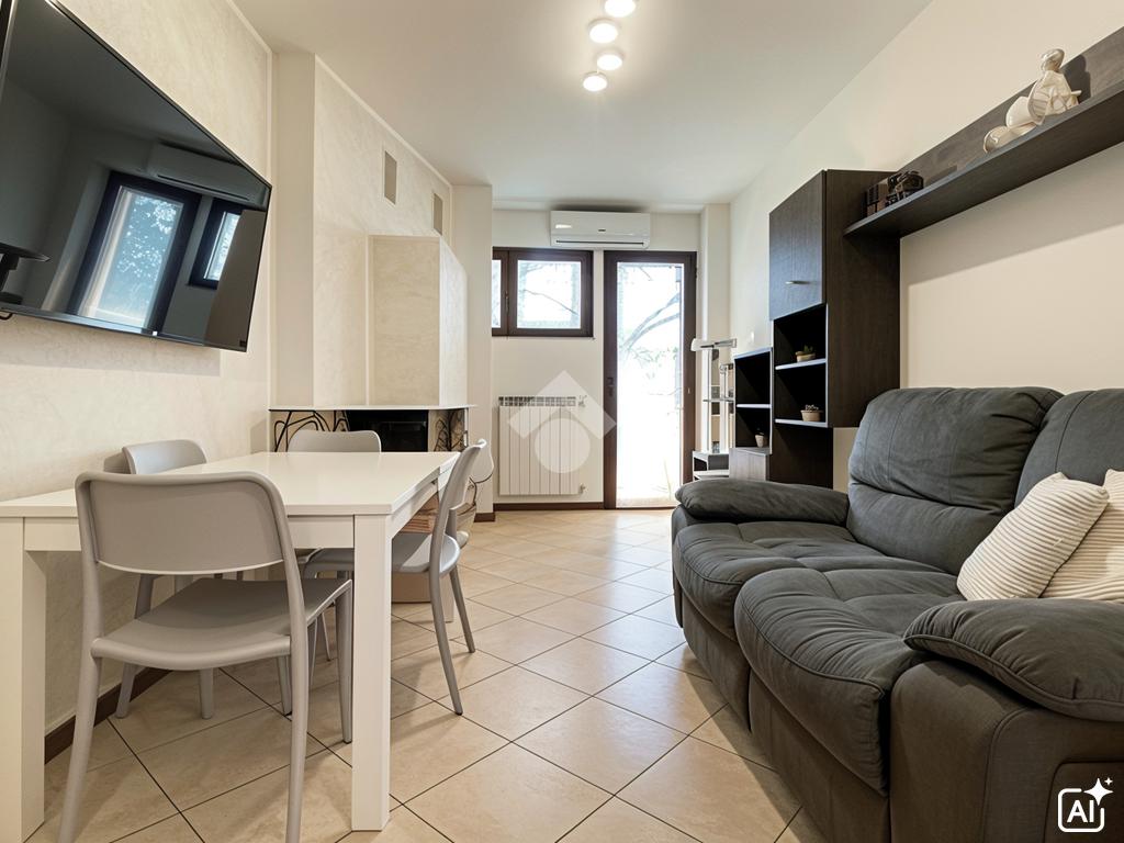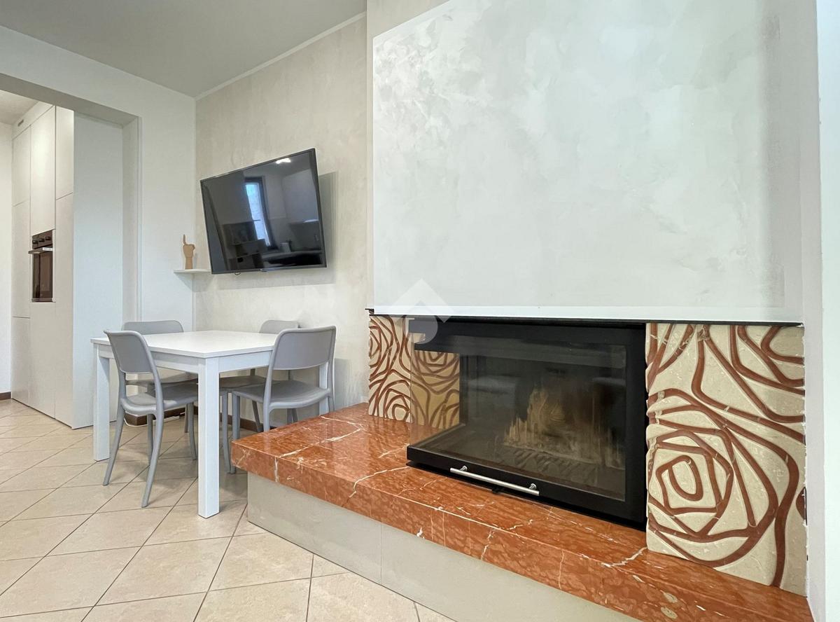 Impreziosisce la soluzione l'impianto di aria condizionata e il moderno camino in muratura che completa l'arredamento della zona living.