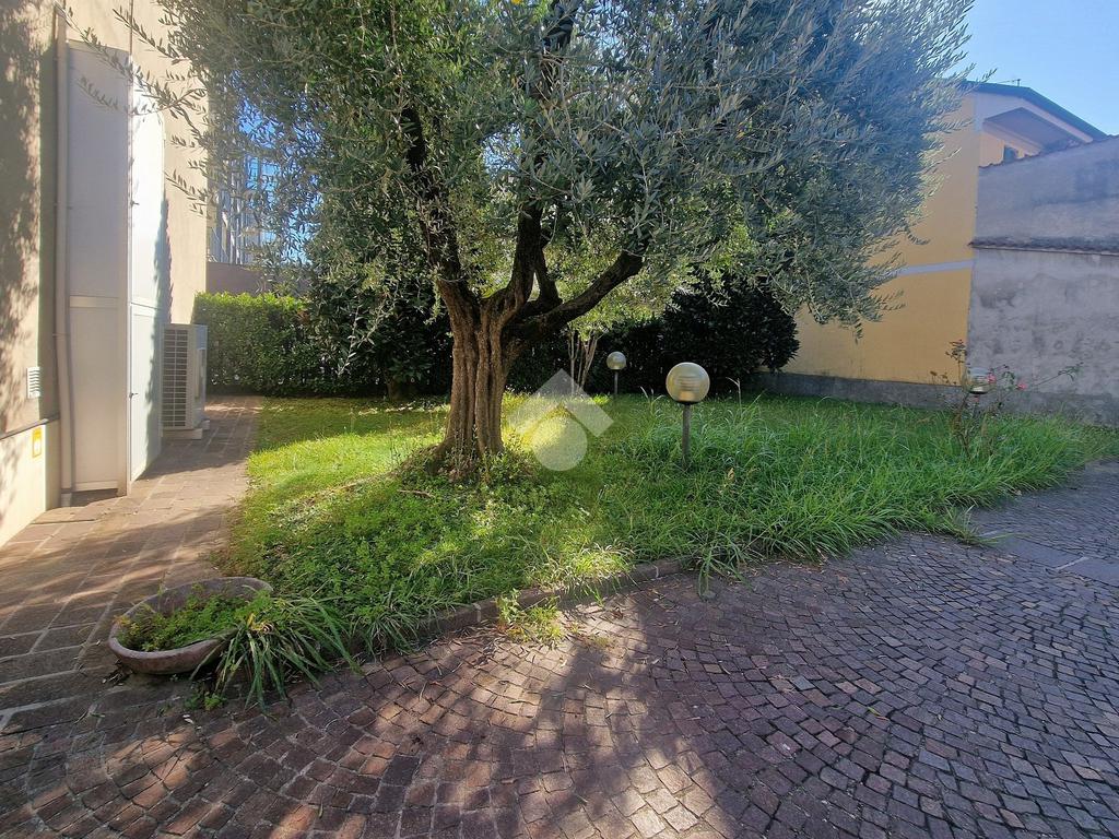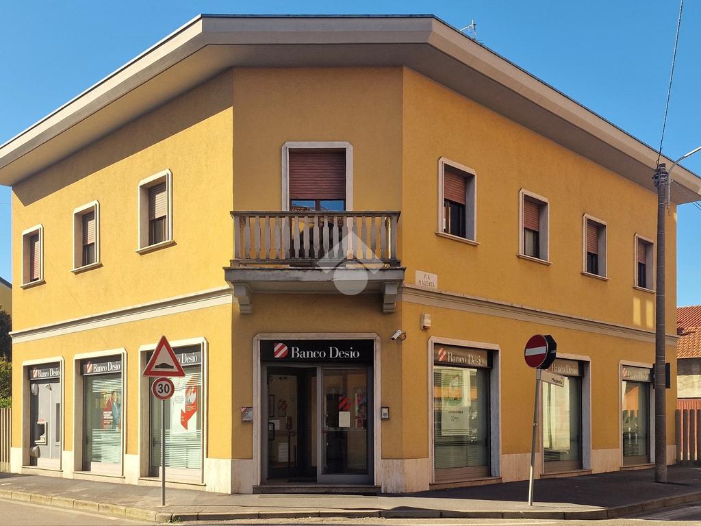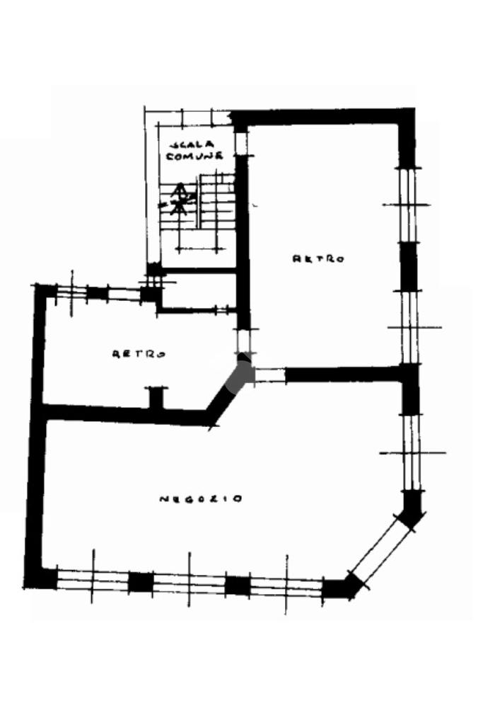 Il negozio al piano terra dispone di sei vetrine con ingresso su strada e ingresso secondario dal cortile interno. Attualmente è locato ad un istituto di credito con regolare contratto d'affitto commerciale.