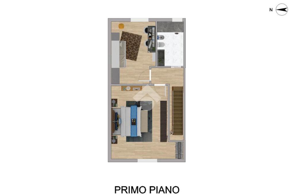 Tramite la scala interna si raggiunge la zona notte con le due camere da letto e il bagno finestrato con doccia.