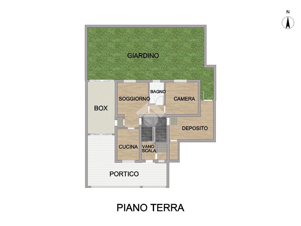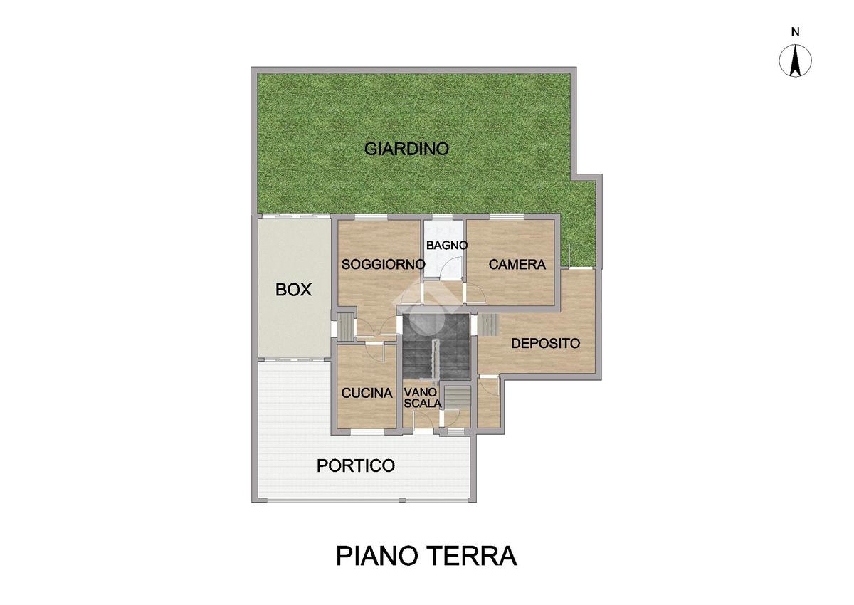 L’ingresso alla proprietà è tramite un porticato dal quale si accede al vano scala comune, che collega tra loro tutti i piani dell’abitazione. Impreziosiscono questa soluzione un riservato giardino privato di 125mq, un ampio box, un pratico deposito/magazzino, tutti posti al piano terreno ed un solaio, recuperabile ai fini abitativi.